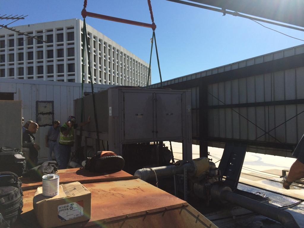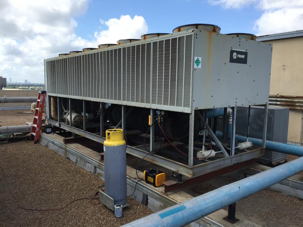 Maintenance and repair of a high-efficiency commercial air conditioning unit to ensure optimal performance and reliability.